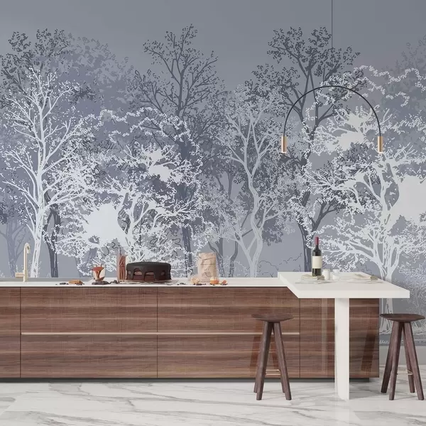 Trees in the forest, minimalism, nature, blue color palette - Wall mural (No. w02930v2)