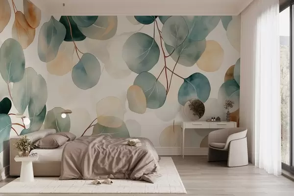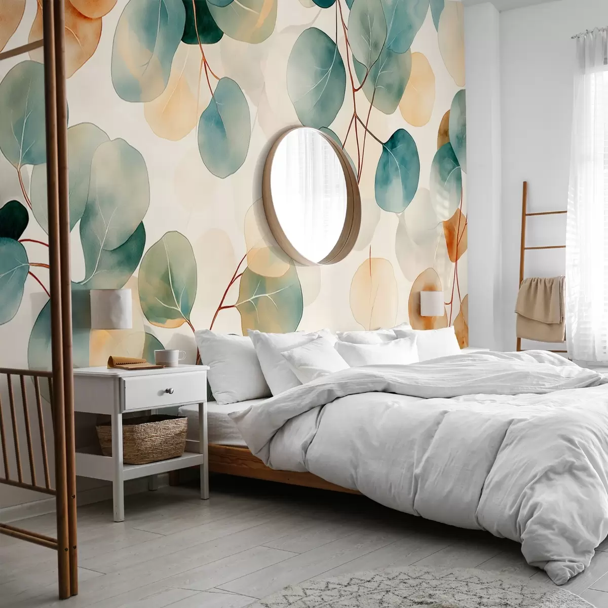 Watercolor style eucalyptus drawing, soft pastel colors, floral - Wall mural (No. w02938)