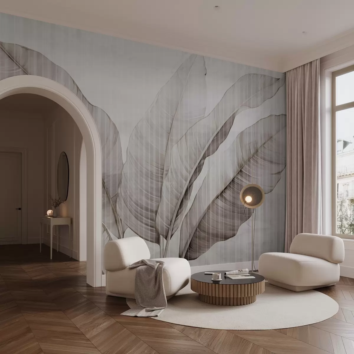 Large leaves on the wall - Wall mural (No. w02982v1)