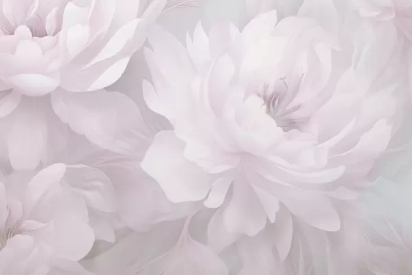 Delicate voluminous flowers in soft cream-white tones on a gentle background - Wall mural (No. w03045)