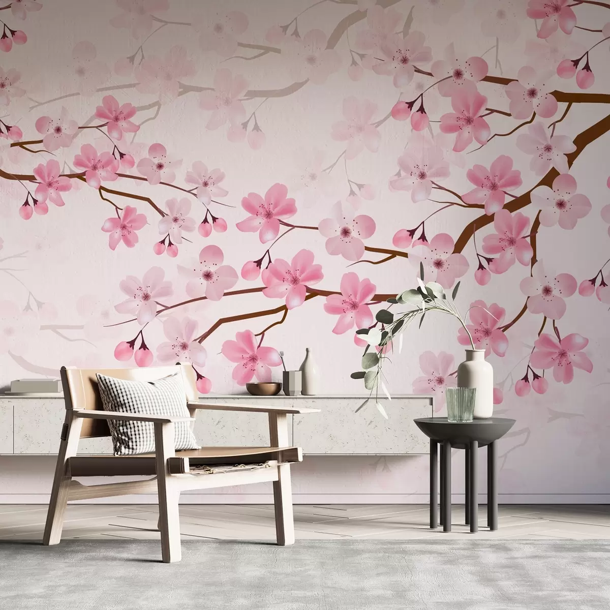 Blooming branches with pink flowers - Wall mural (No. w03097)