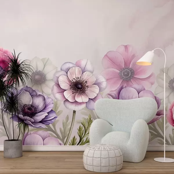 Large bright flowers for watercolor - Wall mural (No. w03098)