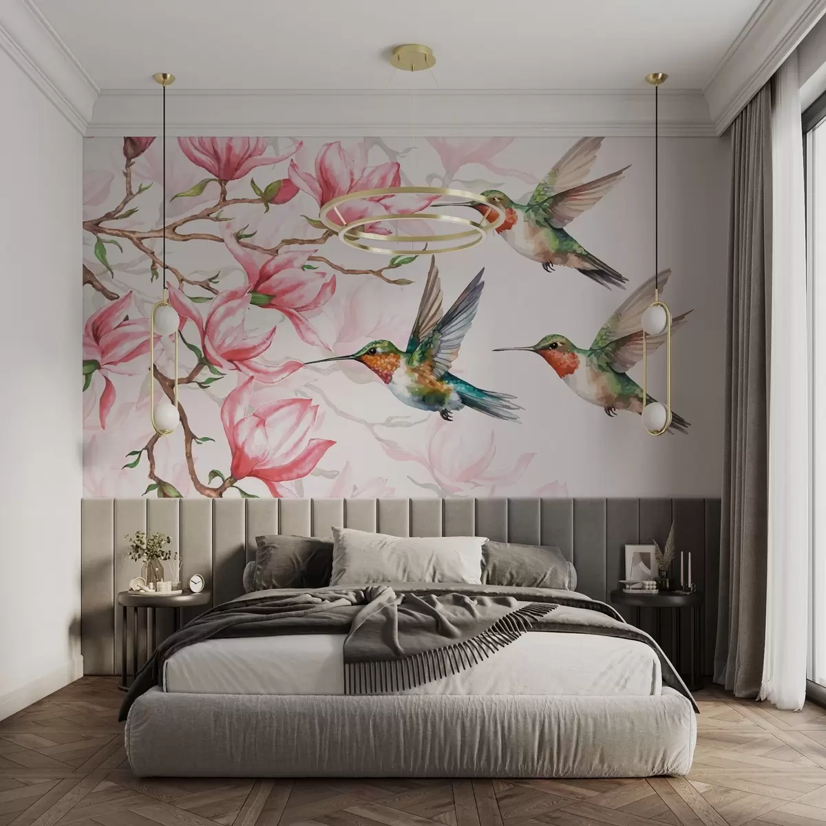 Blooming magnolias and hummingbirds - Wall mural (No. w03104)