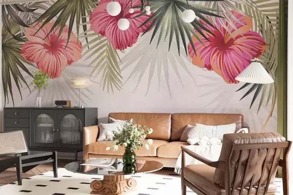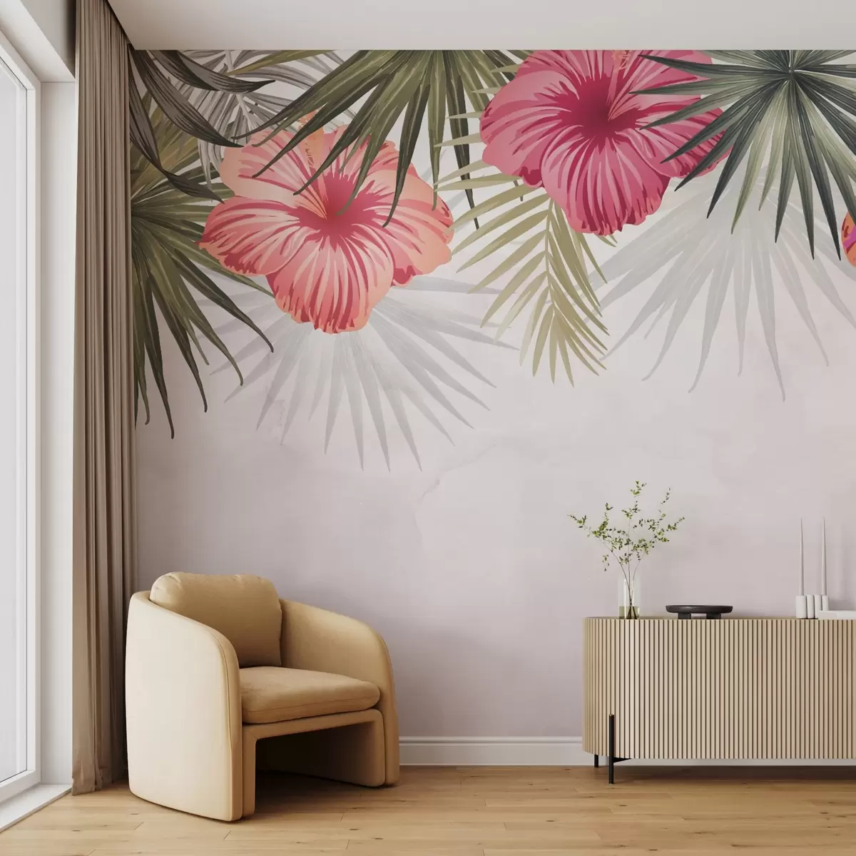 Tropical leaves and flowers from above - Wall mural (No. w03106)