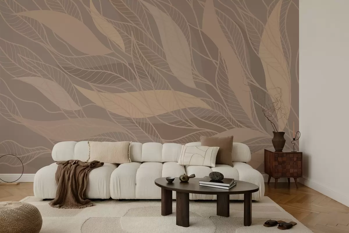abstract leaves in beige and warm colors - Wall mural (No. w03117)