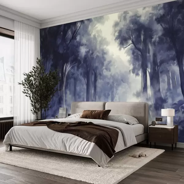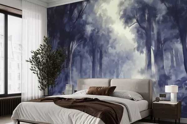 Dense forest, acrylic style drawing, abstract art, blue colors - Wall mural (No. w03147)