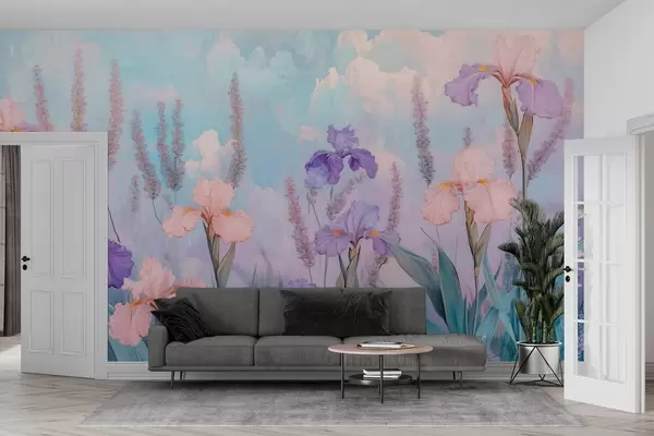 Oli style drawing flowers, summer meadow, floral - Wall mural (No. w03154)