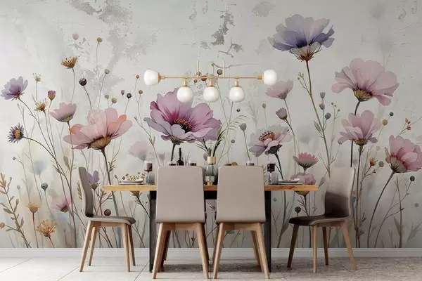 Watercolor flowers in grunge style - Wall mural (No. w03192)