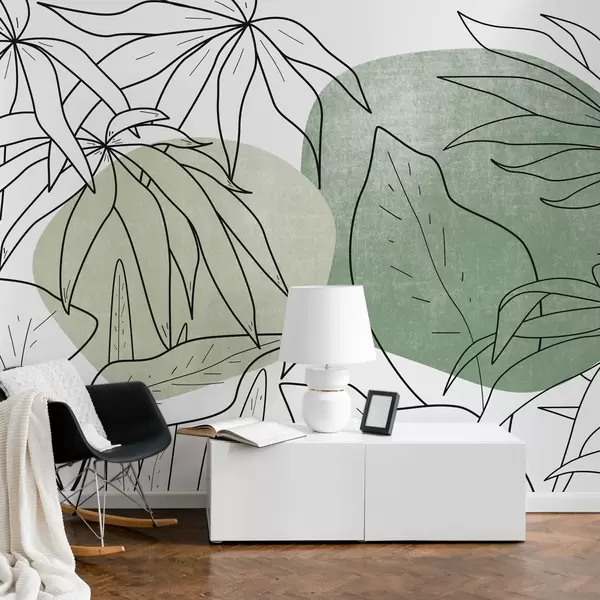 Plants in lines on a background of spots, shades of green - Wall mural (No. w03278v2)
