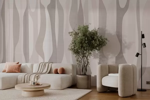 modern abstract shapes in warm beige shades - Wall mural (No. w03283)