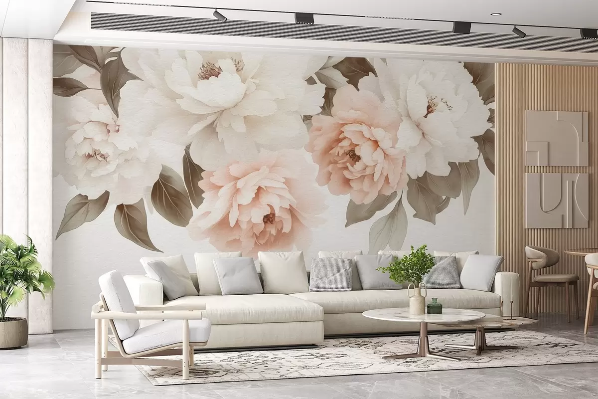 Delicate watercolor vintage peonies - Wall mural (No. w03317)