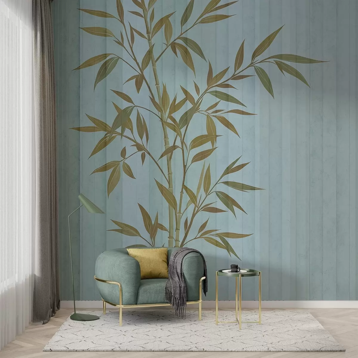 Painted bamboo on a grunge background - Wall mural (No. w03337v2)