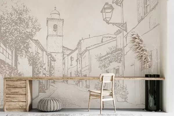 City street, beautiful architecture, buildings, Mediterranean, beige colors - Wall mural (No. w03346)