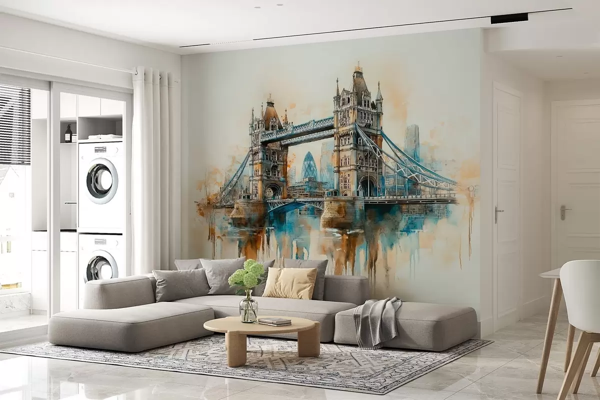 Tower Bridge in watercolor painting technique - Wall mural (No. w03396)