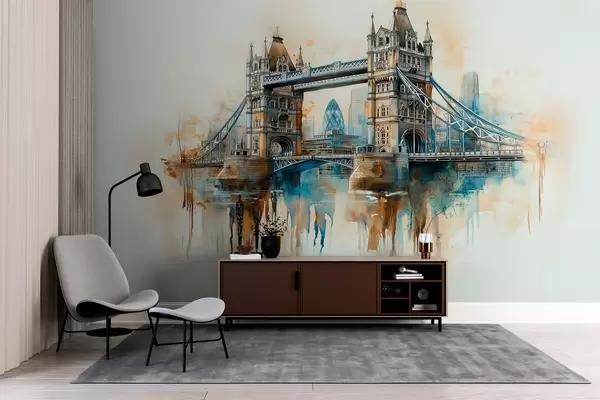 Tower Bridge in watercolor painting technique - Wall mural (No. w03396)