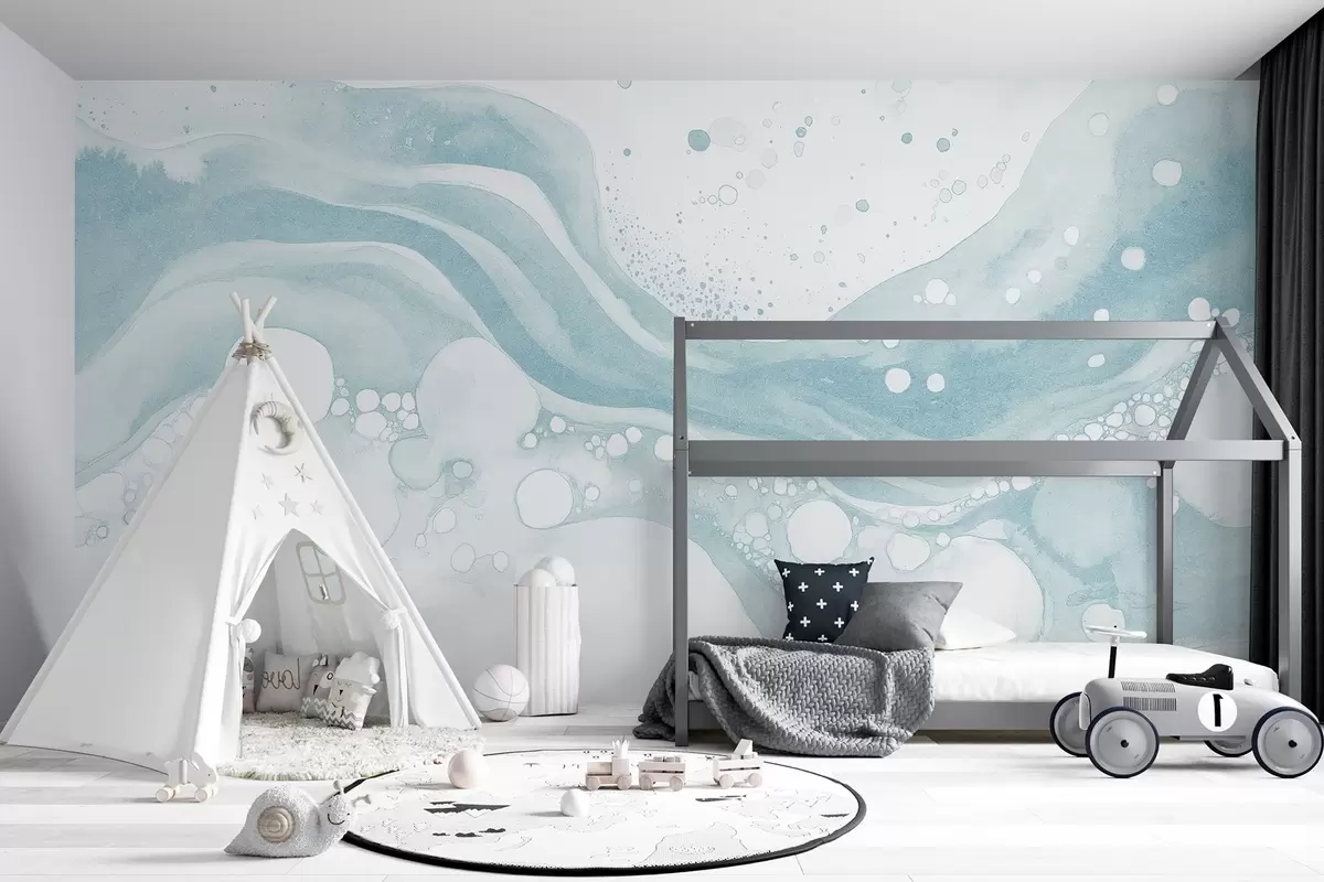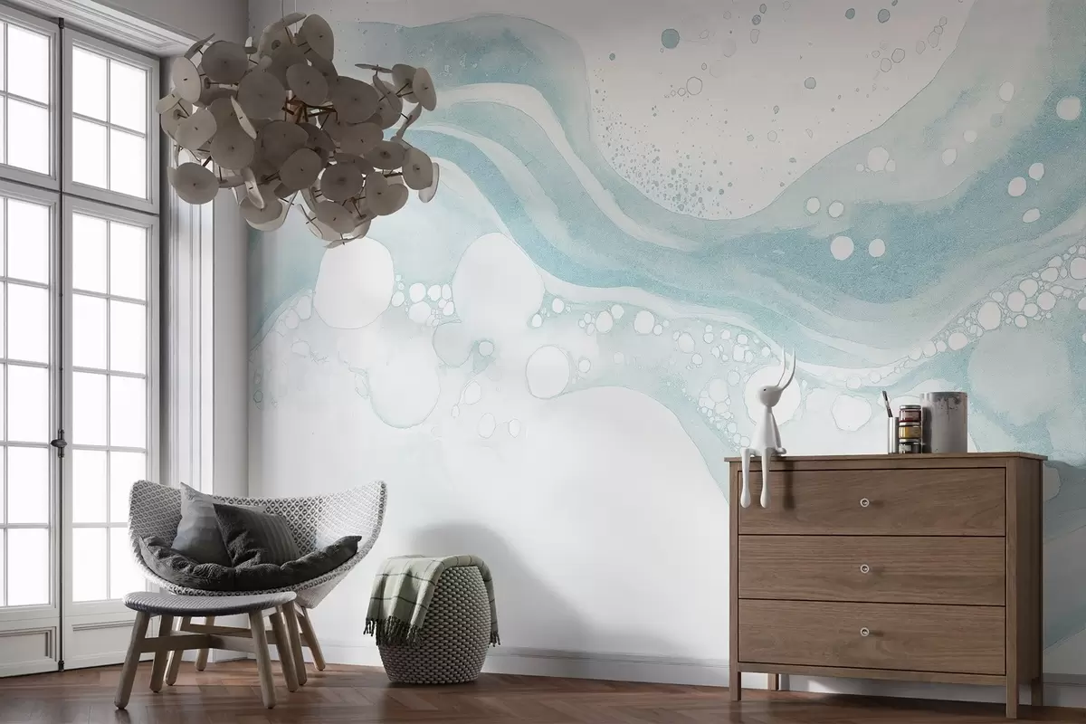 Watercolor style abstraction drawing, fluid art, blue color - Wall mural (No. w03403v1)