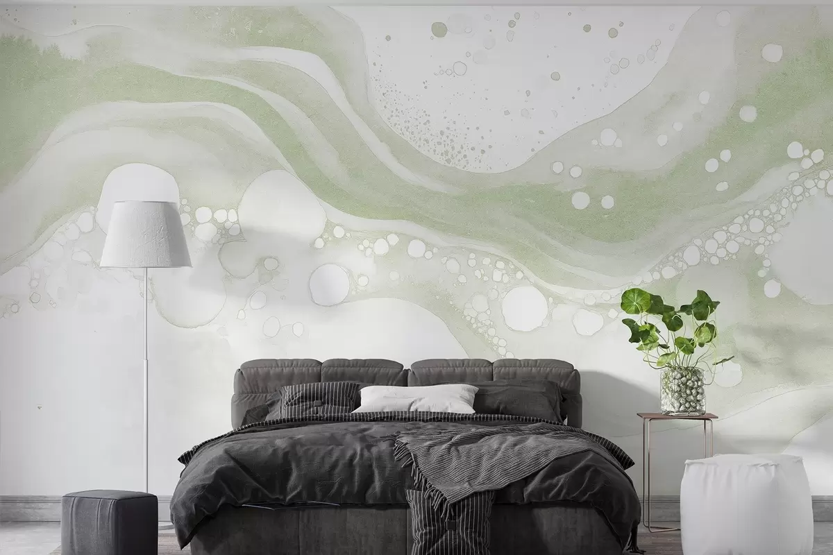 Watercolor style abstraction drawing, fluid art, green color - Wall mural (No. w03403v2)