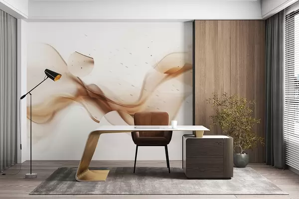 Geometric waves abstraction, blurry style, gradient, beige colors - Wall mural (No. w03404)