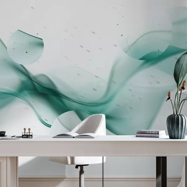 Geometric waves abstraction, blurry style, gradient, aquamarine colors - Wall mural (No. w03404v2)