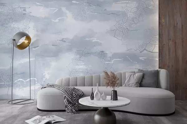 Mandalas on the pastel background, vivid brush strokes, blue colors - Wall mural (No. w03409v1)