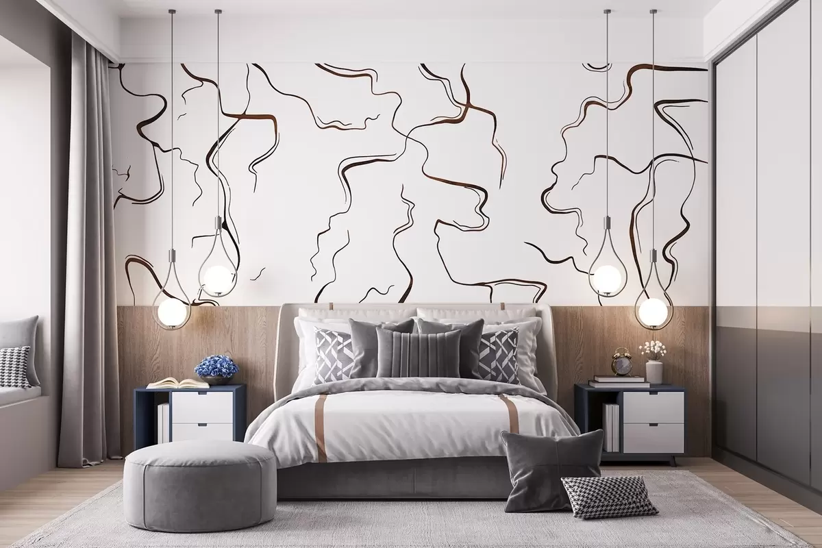 Geometric lines, ink style, abstraction, brown colors - Wall mural (No. w03436v1)