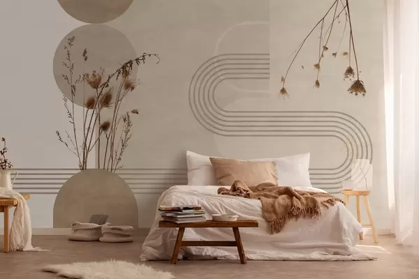 stylish geometry and dried flowers in beige tones - Wall mural (No. w03449)