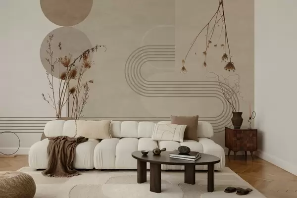 stylish geometry and dried flowers in beige tones - Wall mural (No. w03449)