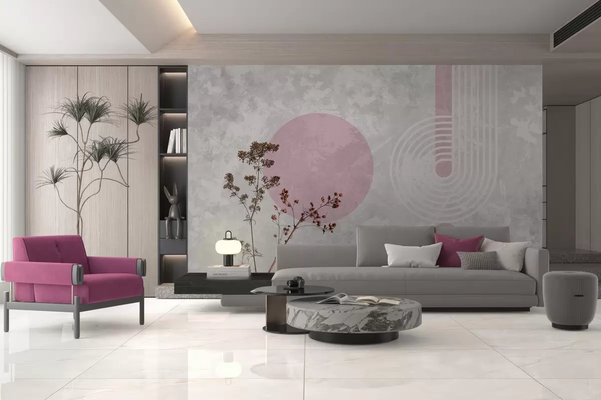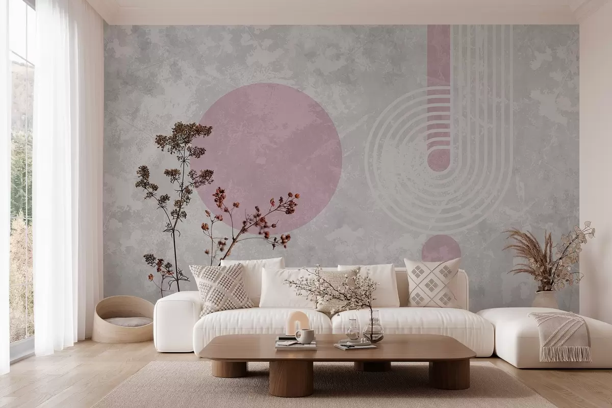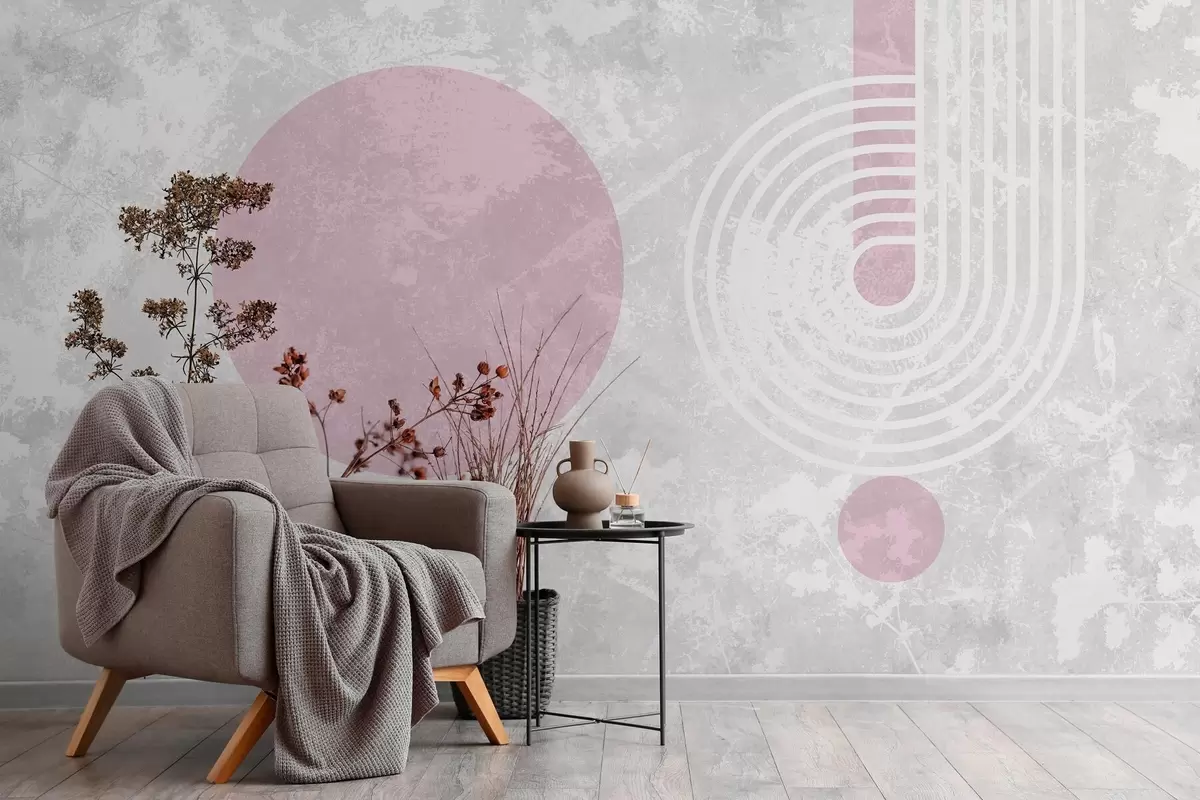 grunge modern geometry with dried flowers - Wall mural (No. w03459)