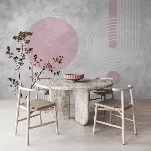 grunge modern geometry with dried flowers - Wall mural (No. w03459)