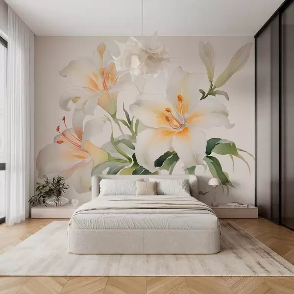 White lilies imitation watercolor - Wall mural (No. w03460)