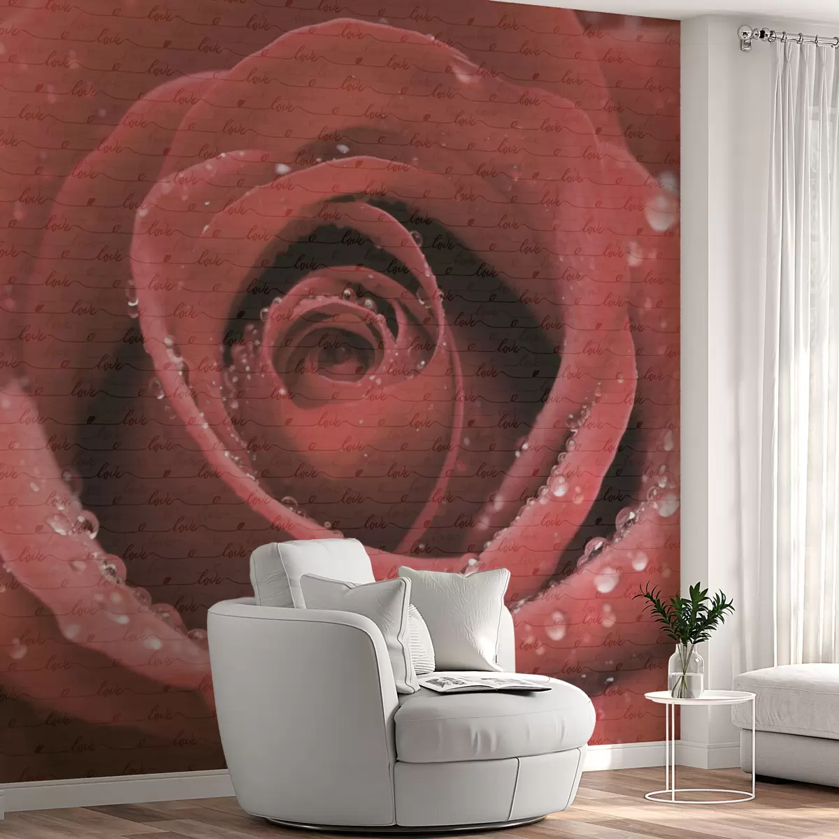 Rose and the inscription Love - Wall mural (No. w03495)