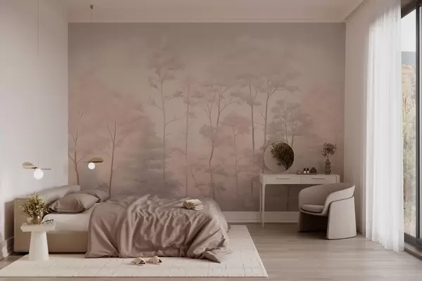 Trendy forest in soft pastel colors - Wall mural (No. w03525v1)