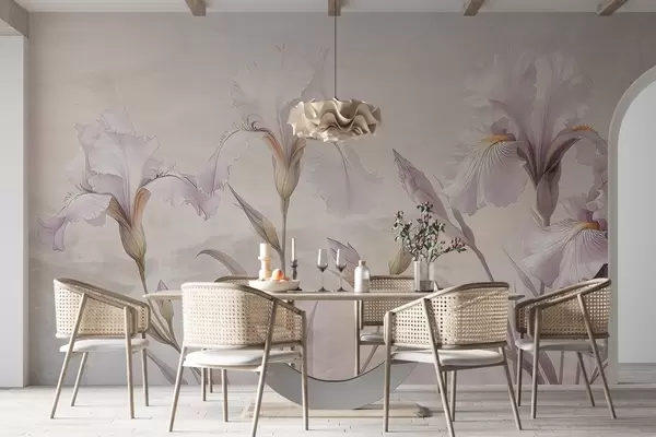 Delicate irises drawing on the wall - Wall mural (No. w03556)