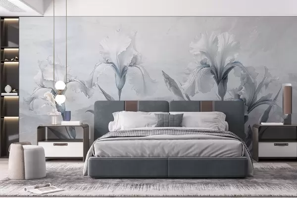 Delicate irises drawing on the wall - Wall mural (No. w03556v2)