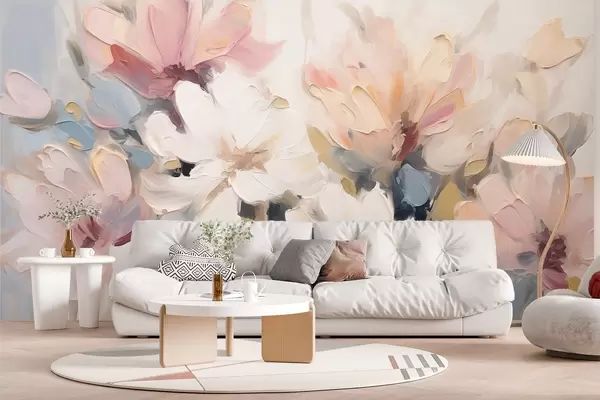Abstract flowers in oil painting style in soft tones - Wall mural (No. w03575)