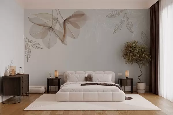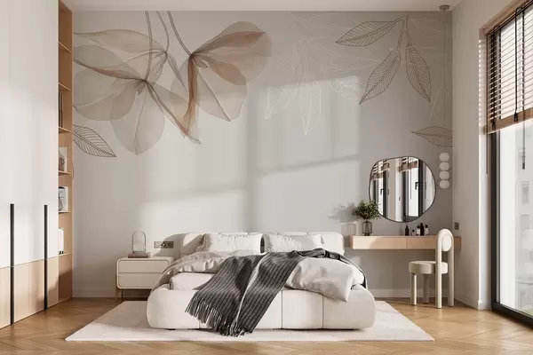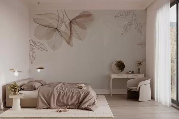 delicate translucent flowers and leaves in mocha tones - Wall mural (No. w03616v3)