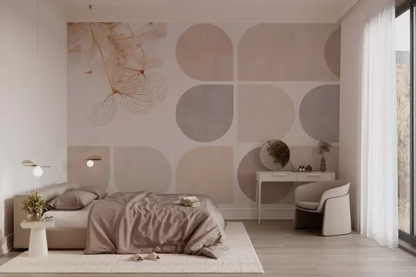 geometry and dried flowers with veins in beige tones - Wall mural (No. w03617)
