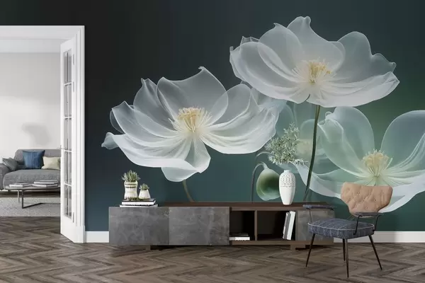 White delicate flowers with translucent petals - Wall mural (No. w03647)