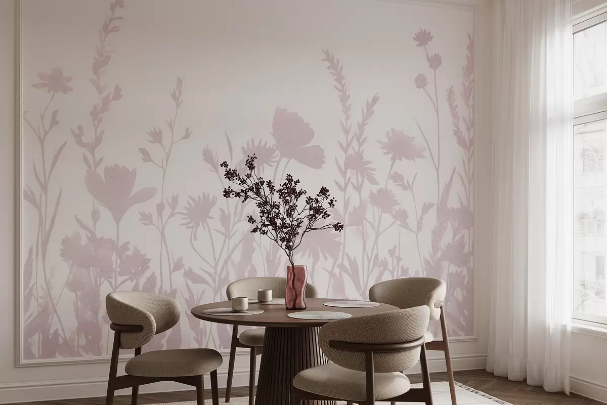 Summer meadow, rustic, flowers, pink color palette - Wall mural (No. w03670v2)