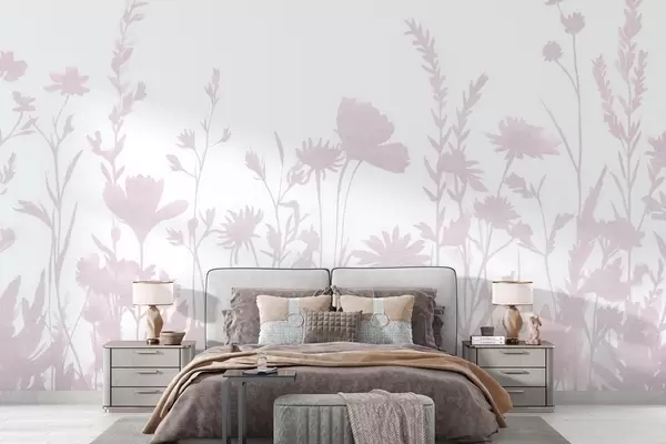 Summer meadow, rustic, flowers, pink color palette - Wall mural (No. w03670v2)