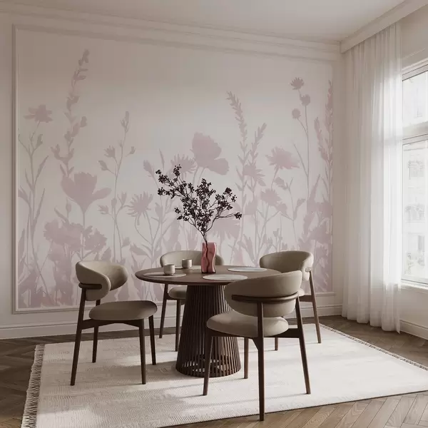 Summer meadow, rustic, flowers, pink color palette - Wall mural (No. w03670v2)