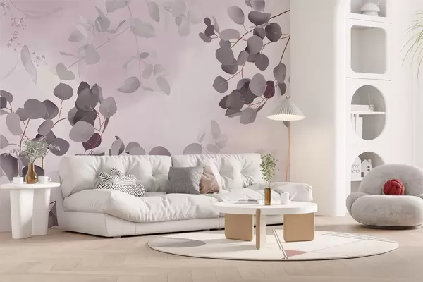 Branches with leaves in pink tones - Wall mural (No. w03719v1)