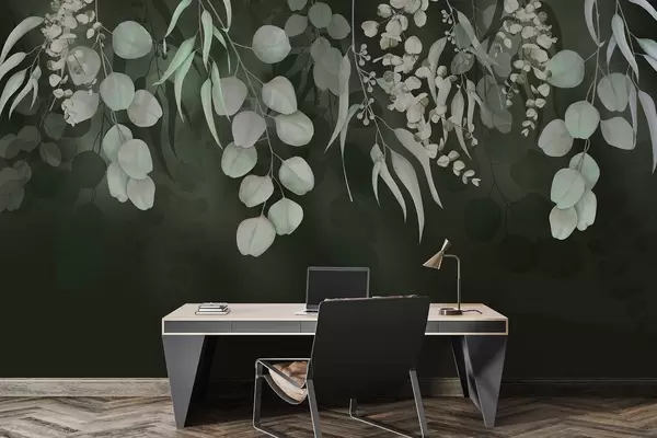 Tropical leaves on the dark green background, floral - Wall mural (No. w03752)