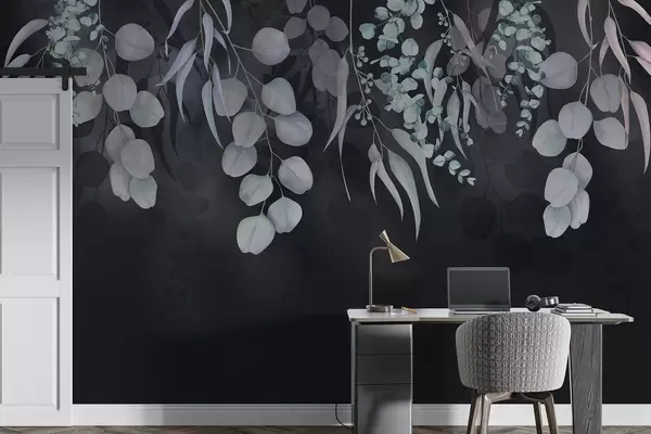 Tropical leaves on the dark blue background, floral - Wall mural (No. w03752v2)