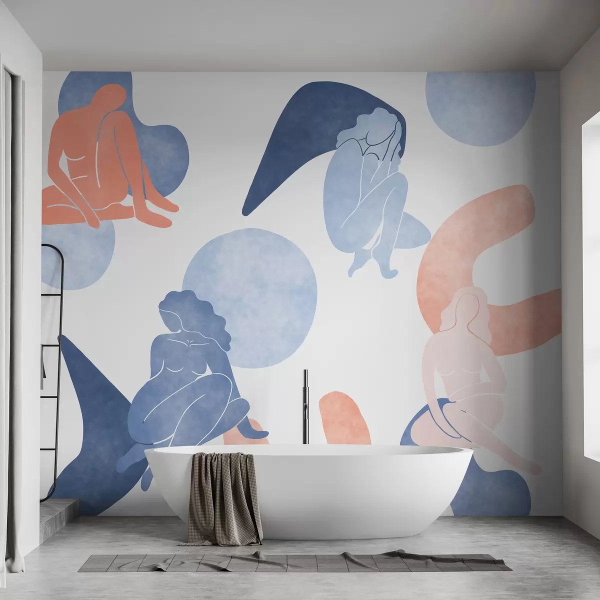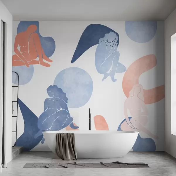 Geometric abstractions with women silhouettes, boho style, blue, beige, pink - Wall mural (No. w03753v1)