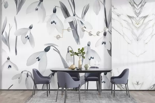 Snowdrops flowers in watercolor style, grey colors - Wall mural (No. w03754v1)