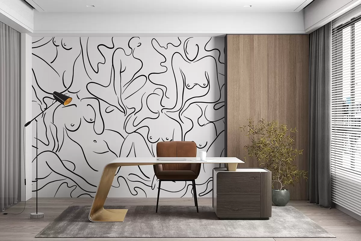Line drawing silhouettes of women bodies, abstraction, black color - Wall mural (No. w03755)