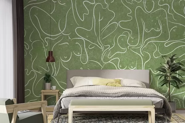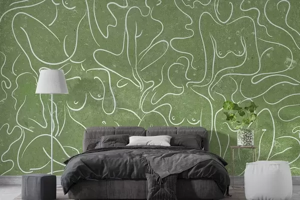 Line drawing anatomical silhouettes, abstraction, green background - Wall mural (No. w03756v2)