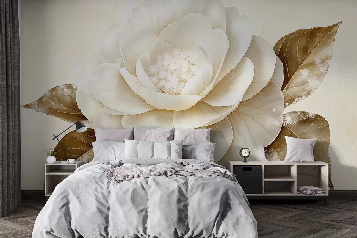 Beautiful peony flower in beige colors - Wall mural (No. w03757)