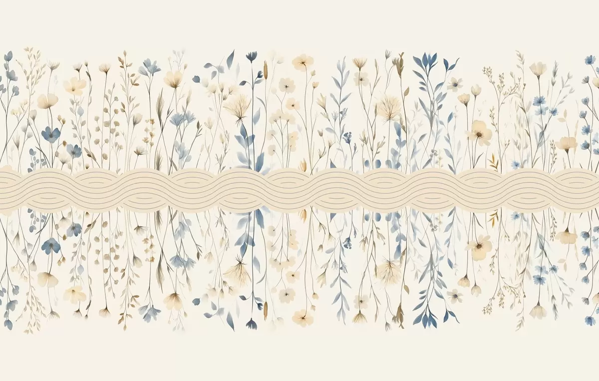 boho style wildflowers with a pattern - Wall mural (No. w03767)